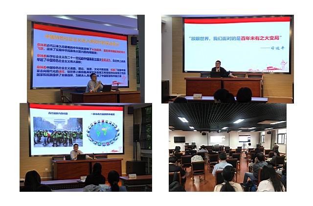 何教授以习近平总书记“放眼世界,我们面对的是百年未有之大变局”一句切入,对比清朝末年的局势,讲述了新中国的历史,展现了中国过去由盛转衰,而今新中国成立后由弱转强,随着全球化的进程,逐步走向伟大复兴的道路。